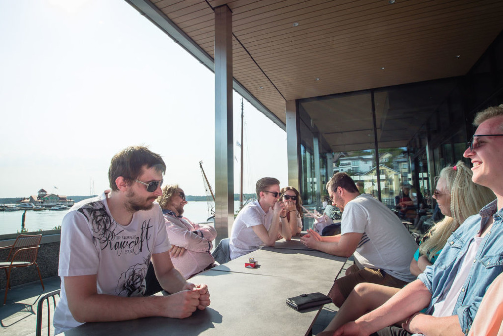 Ilta päättyi Tammisaaressa upean Fyrenin terassilla ja kabinetissa hyvästä ruuasta ja auringonlaskusta nauttien. Yhä soi JCO:n teemalaulu Crockett’s theme. Ja me olimme entistä enemmän JCO.