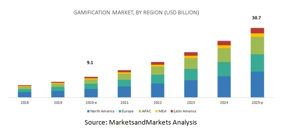 Interaktiivisten pelillistettyjen sovellusten kysyntä kasvaa kovaa vauhtia. Markets and Markets -markkinatutkimuslaitoksen mukaan alan liikevaihto kasvaa viidessä vuodessa 9 miljardista vuonna 2020 lähes 31 miljardiin dollariin vuonna 2025.