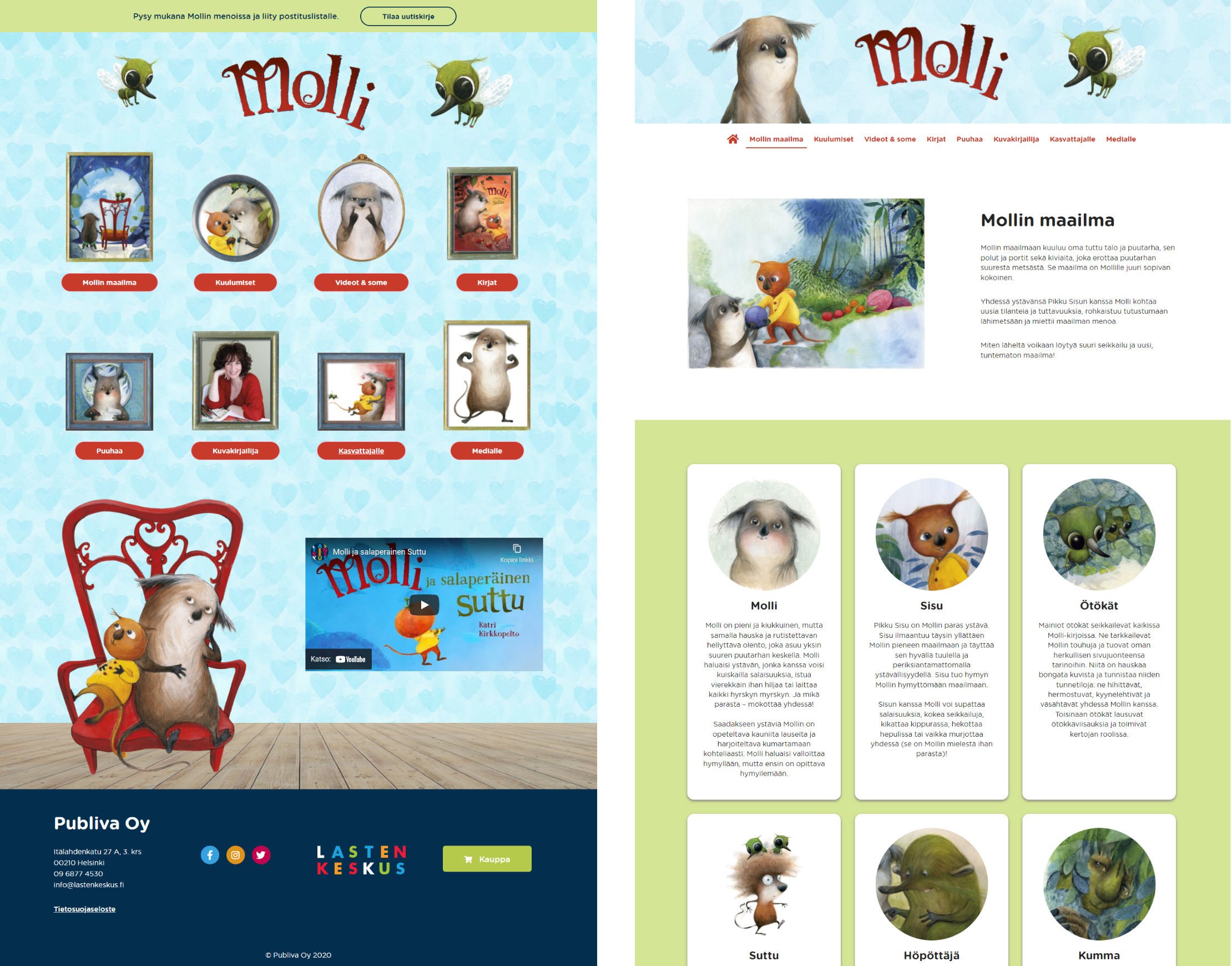 Molli-kirjoja kustantava Lasten Keskus halusi uudistaa Mollin verkkosivun, jotta se palvelisi paremmin kohderyhmiään, eli lapsia, heidän läheisiään, sekä ammattikasvattajia. Erityisesti pienten lasten ja heidän vanhempiensa toivotaan löytävän näin Mollin maailmaan ja Molli-kirjojen pariin. Oli itsestään selvää, että sivustosta tulisi saavutettava ja responsiivinen, mutta lisäksi siihen haluttiin tuoda mukaan Mollin omaa maailmaa leikkisänä visuaalisuutena.