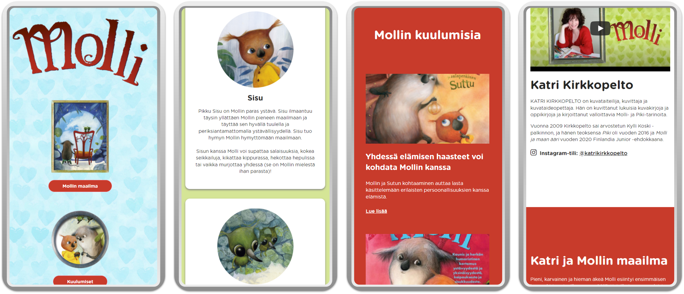 Kiitos JCO – nyt Mollilla on toivomamme helposti navigoitavat kotisivut, joiden päivittäminen onnistuu meidän eli tilaajan toimesta käden käänteessä! Tavoitteena onkin että päivitämme sivuille uutta sisältöä – tapahtumia, animaatioita, TikTok-videoita, puuhatehtäviä, uusia tuotteita ja kasvattajan materiaaleja – siten, että käyttäjät palaavat Mollin verkkosivun pariin kerta toisensa jälkeen. Mollin värikkäästä maailmasta ja uudistetuilta verkkosivuilta löytyy siis uutta löydettävää kerta toisensa jälkeen!