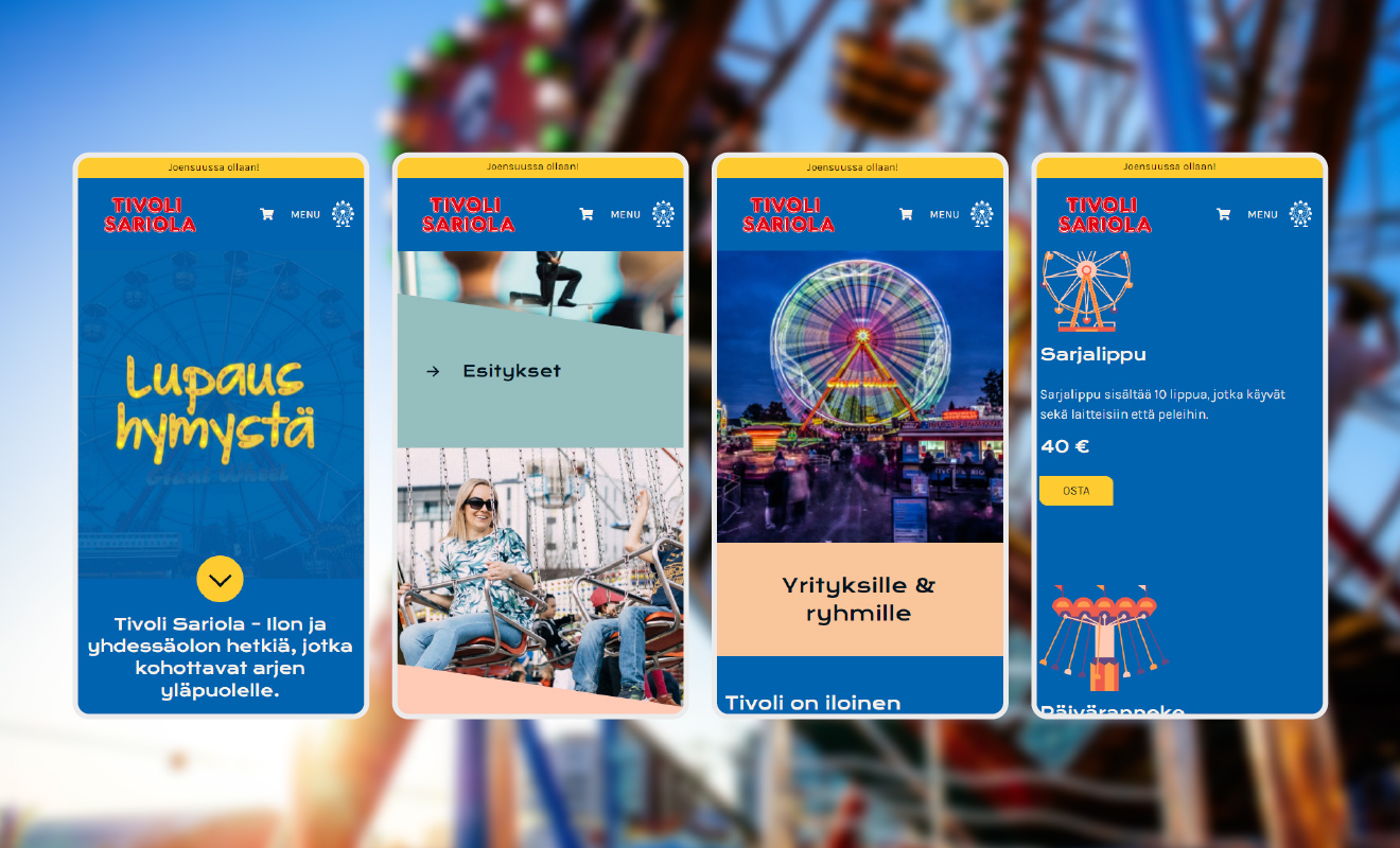 Tivoli Sariolalla oli tarve uudistaa verkkosivujen ja verkkokaupan ilmettä sekä käytettävyyttä. Tivoli Sariola on yksi Suomen tunnetuimmista ja vanhimmista tivolialan yrityksistä. Jo 130 vuoden kokemuksellaan yritys on vakiinnuttanut asemansa viihde- ja huvialan toimijana.