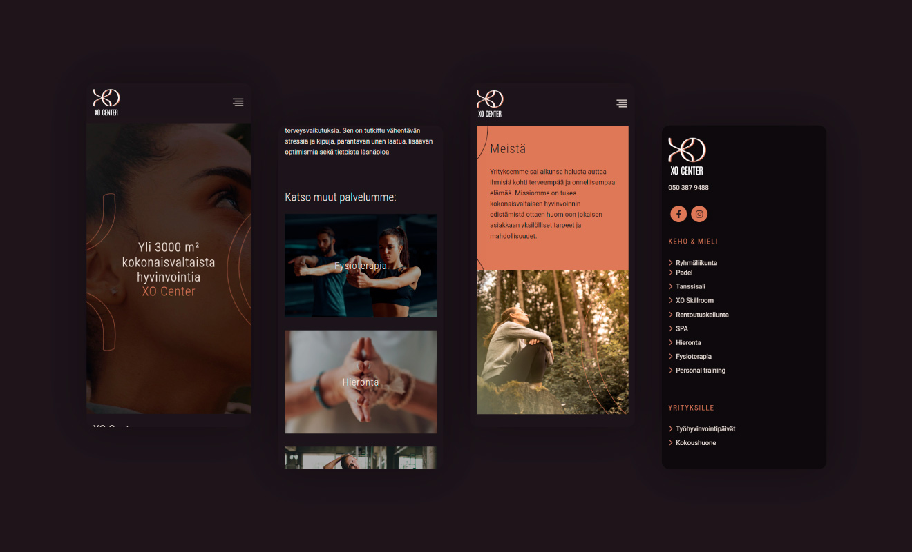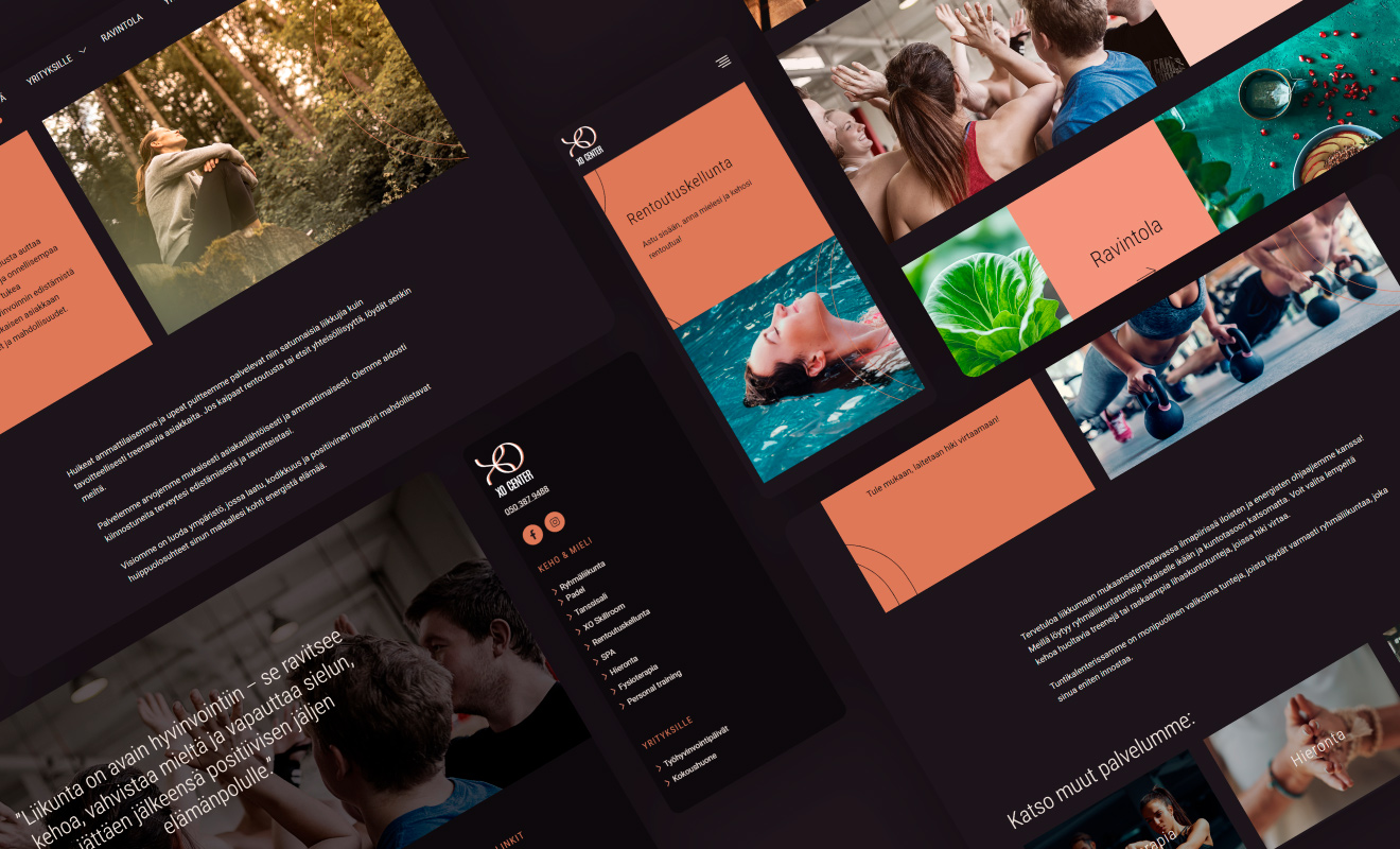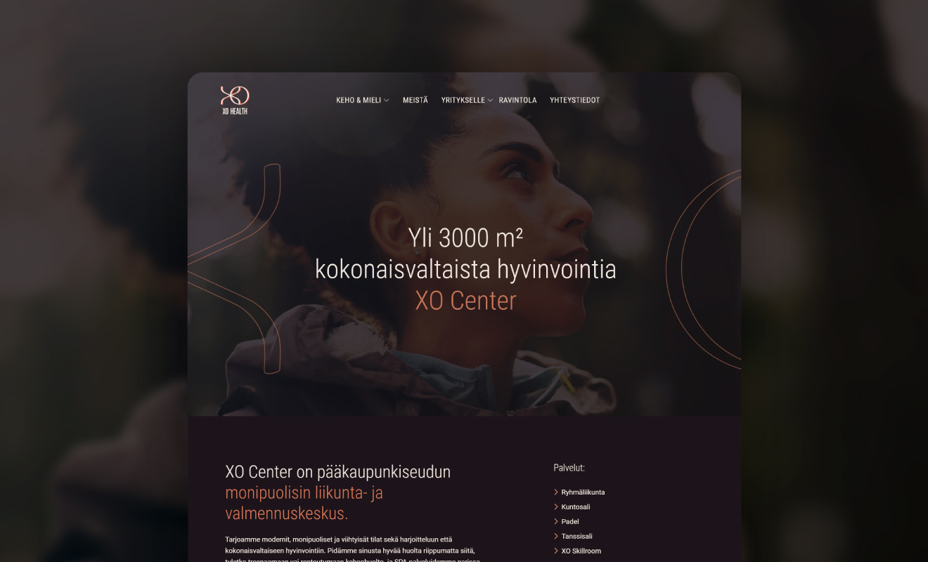 XO Center on uusi Keravalle rakennettava liikunta- ja hyvinvointikeskus, joka on Suomessa ensimmäinen laatuaan. Keskus avaa ovensa vuoden 2024 alussa ja keskukselle haluttiin jo hyvissä ajoin näyttävät ja monipuolisia palveluita kuvastavat verkkosivut. Asiakas perusti somekanavat ja sivuston herättämään kiinnostusta ja viestintää ennen keskuksen aukeamista. Verkkosivuista toivottiin näyttävät, joiden kautta pystyy helposti jakamaan sivua myös sosiaaliseen mediaan sekä markkinoimaan asiakkaan eri palveluja.